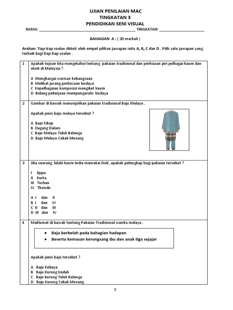 Objek yang mempunyai karya dan seni. Kertas soalan ini hendaklah dibawa ke tempat peperiksaan pada hari yang . Pendidikan seni visual upt psv tingkatan 3.